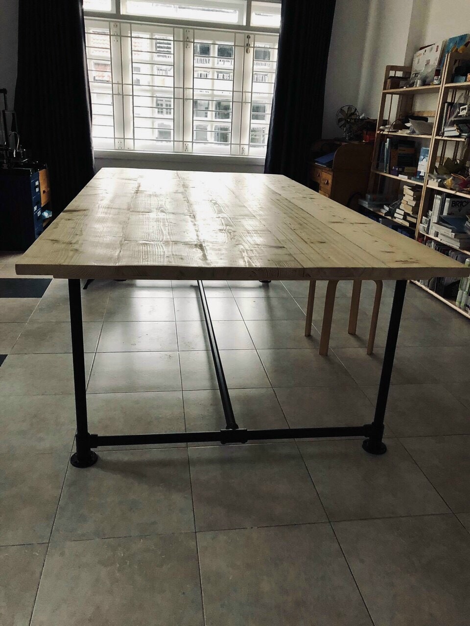 Khớp nối và ống thép sơn tĩnh điện kết hợp cùng mặt bàn gỗ thông chắc chắn dày 40mm tạo nên tổng thể một chiếc bàn họp rất cứng cáp, mạnh mẽ và bền bỉ theo thời gian.